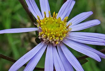 Aster amellus (Aster amelle, Marguerite de la Saint-Michel) : feuilles entières, pubescentes, les inférieures ovales courtement pétiolées, les caulinaires sessiles lancéolées ; capitules groupés en corymbe court ; fleurs (3 cm), ligulées bleu-violet et tubulaires jaunes, akènes bruns, aigrette rousse.