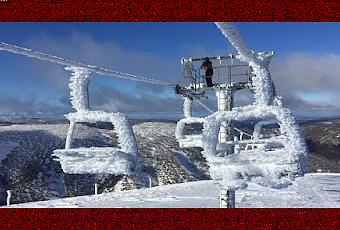 À Mt. Buller, il y avait souvent du brouillard, beaucoup de pluie et de crachin, parfois - Dieu merci ! - de la neige et, de temps en temps, des monticules de glace sur les remontées mécaniques comme je n'en avais jamais vu auparavant.