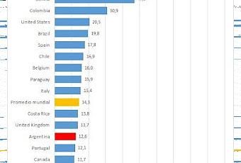 L'Argentine, en rouge, se situe légèrement au-dessus de la France