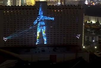 La projection intitulée « Larget videogame display » a eu lieu le 19 août. Elle était accompagnée d’une performance du musicien de Las Vegas Percussia.