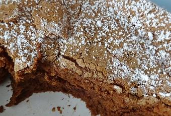 Observation : Ce petit gâteau ressemble à un brownies nature (sans pépites choco, ni morceaux noix ou pécan) … croustillant sur le dessus et moelleux dedans, ce dessert est très agréable.