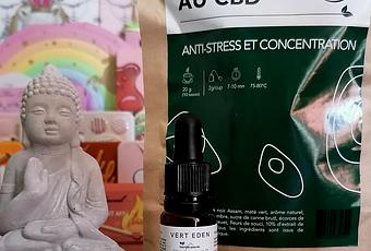 L'Elixir relaxant au CBD de Vert Eden 10% et goût menthe poivrée (49€90 les 10mL) est une huile de chanvre bio qui contient de l'isolat de CBD, Les graines de Griffonia Simplicifolia (renferment une forte teneur en 5-HTP, un précurseur de la sérotonine, aussi appelé hormone du bonheur) et 0% de THC. Elle est conseillée pour réguler l'humeur et mieux gérer ses émotions en toutes circonstances. Elle existe au goût chanvre qui m'a l'air d'être le goût naturel, très herbé et menthe poivrée (huile essentielle) qui est très mentholée mais agréable en bouche si vous aimez ça toutefois!