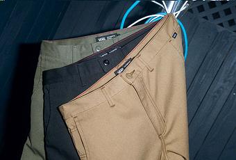 Sur une planche, dans un atelier, ou dans la rue, le chino reste la pièce indispensable que tout le monde devrait avoir dans son armoire. En été comme en hiver, on retrouve le chino partout sur les différents lieux de ride. Pour s’éviter des blessures ou simplement comme un pantalon post session, il doit être léger et resister aux pires des chutes. Dans l’objectif de créer le Chino parfait, Vans a puisé son inspiration dans l’héritage du workwear et des vêtements de travail. La marque explore de nouveaux territoires avec cette pièce qui veut à terme s’imposer comme un item fort du vestiaire des skateurs, et même des créateurs, du monde entier.