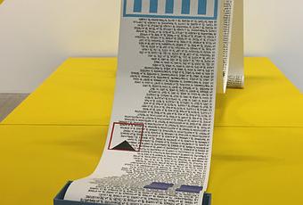 Le hasard de mes visites à internet, la semaine dernière, tandis que je vous suggérais d’écrire à partir de deux lettres, m’a fait arriver sur une vidéo présentant une lecture publique de Michèle Métail. D’elle, j’ai déjà présenté dans ce blog ses gigantextes, la contrainte du filigrane, ses portraits robots, ou encore ses Pierres de rêve avec paysage opposé. Elle a aussi développé un très long poème sur Le cours du Danube où se succèdent des compléments d’objet ; texte écrit en français, en allemand et en chinois, que l’on peut voir en ce moment, du 8 au 19 septembre 2021, au Centre Pompidou, dans le cadre du Festival Extra, et dans la photo ci-contre...