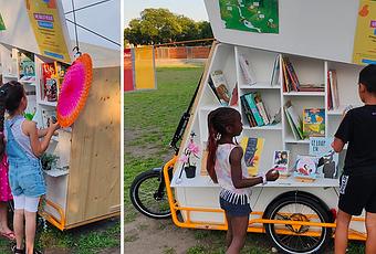 Vous vous souvenez peut-être de cet Argentin qui prenait la route à bord de son Arme d'Instruction Massive. Un véhicule roulant en forme de Tank équipé d'une centaines de livres distribués gratuitement dans les villages. À Lyon, Biblio Take Air s'invite dans les espaces publics, à vélo, afin de faire également découvrir la lecture à tous les enfants.