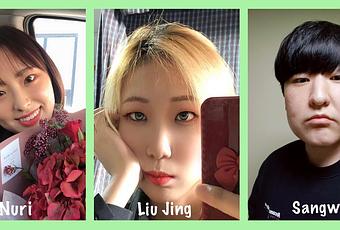 Jun Hwan et Heon Gwan sont en 3ème année, mais Yeong Ju, qui a 21 ans, est en 2ème année. Les garçons ont tous les deux 23 ans. Comme Yeong Ju, Heon Gwan est né et habite à Cheongju avec ses parents, mais il a un grand frère qui ne vit pas dans la même ville. Heon Gwan s'entend mal avec son grand frère parce que ça fait longtemps qu'il n'habite plus avec lui (depuis le lycée). Son grand frère habite dans la région du Jeolla. Jun Hwan est né sur l'île de Jeju mais maintenant il habite seul à Cheongju pour suivre des cours. Il a une petite sœur. Même si sa région natale est Jeju, il ne peut pas nager et il n'aime pas les fruits de mer. Par contre Yeong Ju qui est née dans une région sans mer, aime beaucoup les fruits de mer et elle veut apprendre à nager. Au contraire des garçons, Yeong ju est fille unique. Nous sommes tous les trois célibataires.