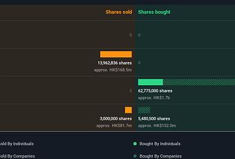 Au cours de la dernière année, nous pouvons voir que les initiés ont acheté 11,10 millions d’actions d’une valeur de 321 millions de HK$. D’autre part, ils ont cédé 16,96 millions d’actions, pour 253 millions de HK$. Au total, les initiés de Koolearn Technology Holding ont acheté plus qu’ils n’en ont vendu l’année dernière. Le graphique ci-dessous présente les transactions d’initiés (par les entreprises et les particuliers) au cours de la dernière année. Si vous voulez savoir exactement qui a vendu, pour combien et quand, cliquez simplement sur le graphique ci-dessous !