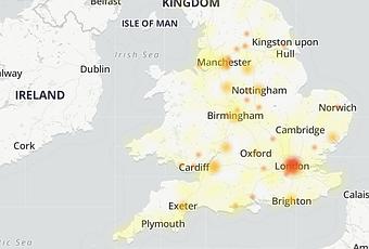 De nombreux utilisateurs ont signalé des problèmes à LondresPlus de 100 cas ont été signalés sur Détecteur de bas.