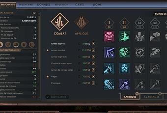 On retrouve ensuite un système d'attributs à délivrer à notre personnage, ils sont au nombre de 8 et c'est des attributs plutôt habituels pour un jeu du genre. C'est dommage, on constate quand même quelques subtilités au niveau des talents. Comme dans Fallout, on va alors pouvoir choisir 3 talents favoris. On a alors un score de base boosté. On y découvre alors une sélection d'aptitudes actives et passives pour chaque talent exploitable. Elles se débloquent alors par tranche, par paliers (à 30, 60, 90, 120 et 150 points investis) tout en ayant des prérequis qui sont liés à des attribus ou à d'autres talents. En effet, le piratage est une aptitude du talent " Science " mais qui aussi comme prérequis de demander un score minimum en Criminalité pour pouvoir l'utiliser. Le jeu dispose donc de quelques finesses de gameplay appréciables.