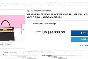 Le sac Hermès Noir Black Epsom Sellier Kelly 28 se vend neuf pour 24 999 $ dans une annonce Ebay avec de bonnes contrefaçons coûtant environ 3 000 $.