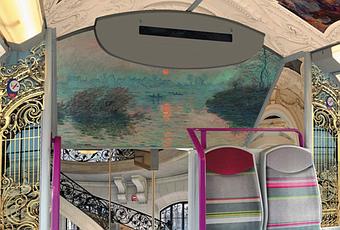 Dans ce RER C baptisé le " Train Paris Musées " on retrouve des décors des emblématiques salons parisiens conservés au musée Carnavalet-Histoire de Paris. Mais aussi la Fée Électricité de Raoul Dufy, l'une des plus grandes œuvres du monde, chef-d'œuvre du Musée d'Art moderne de Paris. Ou encore la nouvelle galerie des sculptures du Petit Palais.