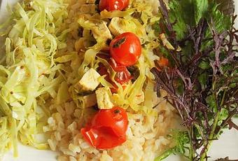 Aujourd'hui, je vous propose du Chou et du tofu à la tomate (Vegan) :