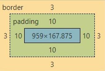 Maintenant que le frontière propriété est visible, elle a une largeur par défaut de 3px, comme on le voit dans le modèle de boîte ci-dessous.