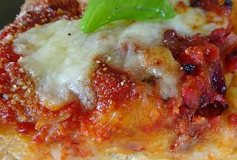 La sfincione est la pizza sicilienne et ressemble plutôt à la focaccia. La pâte spongieuse est couverte d'une sauce tomate aux oignons et de fromage sicilien.