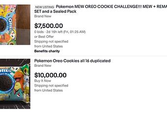 Pour mémoire, le pack d'Oréo x Pokémon est à la base vendu dans les magasins pour moins de 4 $ sur le site américain Target par exemple. Bien que collectionner des cookies semble une idée farfelue (biscuits périssables), c'est tout à fait normal pour la franchise Pokemon. Depuis des années, ces produits dérivés sont très prisés par la communauté de fans. " Le truc avec Pokemon, c'est qu'il a été conçu pour que les gens deviennent collectionneurs ", a déclaré Dennis Lee, rédacteur de The Takeout. " Vous avez des personnages Pokémon vraiment difficiles à capturer. La rareté fait vraiment grimper les prix. "