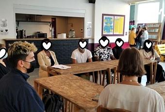 L’idée de ces visites est de donner à comprendre la diversité des métiers qui interviennent dans la production de projets culturels. Des programmatrices à la directrice en passant par le chargé de communication, d’administration, la responsable technique ou encore le responsable de production, les élèves ont rencontré toute l’équipe de Mains d’Oeuvres et ont pu avoir un aperçu concret des missions qu’elles.ils auront l’occasion d’aborder dans leur cursus.