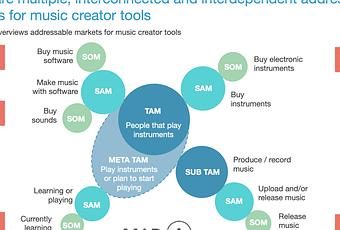 Méta TAM : C’est le TAM de base ainsi que les consommateurs qui ont l’intention de commencer à apprendre des instruments. La combinaison de l’effet catalyseur que la pandémie a eu sur la musicalité et la montée en puissance des outils d’apprentissage en ligne – en particulier des didacticiels YouTube et des outils comme les applications de tablature de guitare – augmente le nombre de personnes qui deviennent musiciens.