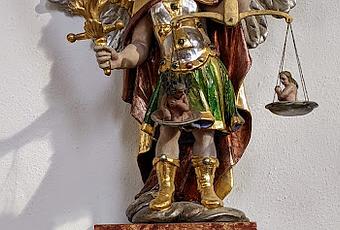 [FR] La pesée des âmes désigne la psychostasie dans le christianisme et peut apparaître dans deux contextes : lors d'un premier jugement intervenant directement après la mort de l'individu ou alors au moment du Jugement dernier. Bien qu'il y ait de nombreuses variantes, au Moyen Âge, l'image type de la pesée des âmes représente l'archange Michel, chef de la milice des anges, procédant au jugement des défunts par le biais d'une balance avec laquelle il pèse leurs bonnes et mauvaises actions ; c'est le plateau le plus lourd qui l'emporte. (Source Wikipedia, article Pesée des âmes).