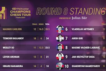 Le classement du Meltwater Champions Chess Tour après 8 tours.