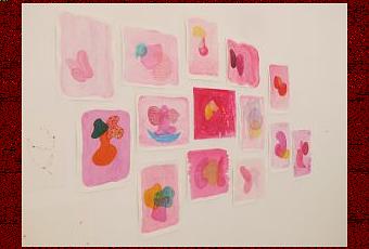 A l’occasion de « Octobre Rose » , elle présente deux parties: d’abord un travail avec des habitants de la ville accompagnés par l’artiste Matthieu Louvrier. Trois grandes toiles aux dominantes roses, qui évoquent subtilement la femme, sa force et sa faiblesse, sa souffrance et sa capacité de bonheur. Sur le mur d’en face, sont accrochés les essais et préparations. Belle idée.