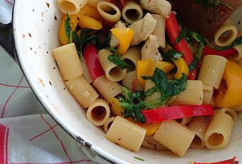 Réserver 125 ml (1/2 tasse) d'eau de cuisson, égoutter les pâtes