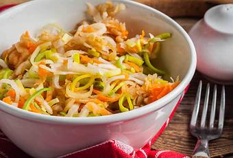Salade de poireaux pommes et carottes , un délice léger et appétissant pour votre entrée , voila la recette facile à la maison.