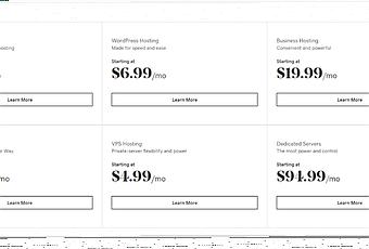 GoDaddy propose un sélection d’options d’hébergement, y compris l’hébergement partagé, WordPress, commercial, revendeur, VPS et serveur dédié. Les prix commencent à partir de 4,99 $ pour le plan VPS le moins cher, mais la structure tarifaire est globalement assez décevante.