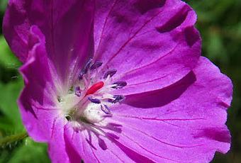 Geranium sanguineum (Géranium sanguin) : Feuilles palmatipartites à 7 lobes trifides, velues ; fleurs solitaires ; grandes (2-4 cm), pourpre à carmin, exceptionnellement blanches, pétales plus ou moins échancrés en cœur.
