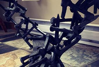 Voici une table à deux plateaux, fabriquée avec un pied de plusieurs clous de chemin de fer, soudés ensemble. Julien Lalonde de Création Boislien est l’artisan derrière cette magnifique pièce. Vous aurez besoin de vous y connaître en soudure, mais avouez que le résultat est spectaculaire.