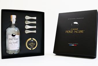 Le caviar de Caviar Perle Noire développe une palette d'arômes qui peut être sublimée si elle est associée au produit parfait ! C'est le défi osé qu'a décidé de relever le producteur Caviar Perle Noire en imaginant un coffret cadeau disponible, dès octobre, en épicerie fine et sur son site internet au prix de 119€. Les gourmets pourront (re)découvrir le Caviar Perle Noire Classique (30g), un caviar de caractère, au goût corsé, associé à une vodka (35cl) aux saveurs du Périgord. Ainsi, châtaignes et céréales anciennes, tel que le sarrasin, sont distillées artisanalement dans un alambic traditionnel, à partir de l'eau des sources de la distillerie de l'Ort, où est distillée la vodka. " Pour garantir une dégustation optimale, 4 cuillères en nacre complètent le coffret.