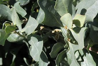 Atriplex halimus (Arroche marine) : sous-arbrisseau blanc argenté, très ramifié ; feuilles persistantes, alternes, losangiques, blanchâtres ; fleurs jaunâtres en panicule allongée, valves fructifères coriaces, réniformes, lisses.
