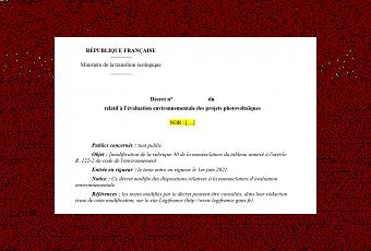 Le ministère de la transition écologique vient d'ouvrir une consultation publique consacrée au projet de décret relatif à l'évaluation environnementale des projets photovoltaïques. Présentation.