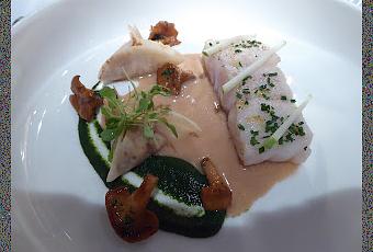 A l’apéritif, un verre de Champagne Grand Cru, Avec le Temps, maison De Sousa: un Blanc de Blancs avec une belle vivacité, une amertume salivante, une bouche serrée, charmeuse, une acidité bien née. C’est fin, tendu, gourmand. Belle mise en bouche. Très Bien +