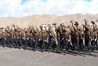 Pawai Pingsan Ke-62 Resimen Pramuka Ladakh diadakan pada hari Rabu. Komandan resimen memeriksa parade.