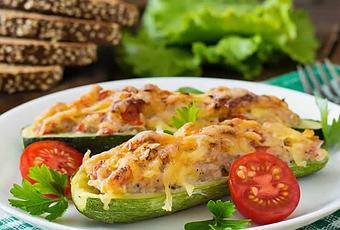 Courgettes farcies au poulet au four , un délice au four pour votre plat principal , voila la recette facile à la maison.