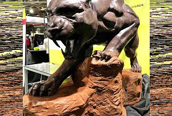 Les sculptures sont sans doute moins gigantesque qu’auparavant mais j’ai été impressionnée par cette panthère de 1, 60 mètres, réalisée par Maëlig Georgelin dont on se souvient de l’énorme rhinocéros de 40 kilos fait en 2019.