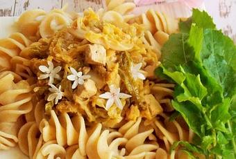 Versez la bière. Montez le feu et laissez évaporer l'alcool. Ajoutez 200 ml d'eau, couvrez et laissez cuire, pendant une vingtaine de minutes. La sauce est devenue légèrement sirupeuse grâce à la farine et au sucre de la bière. Pendant ce temps-là, faites cuire les pâtes, allez cueillir la roquette (lavez-la) et les fleurs comestibles.
