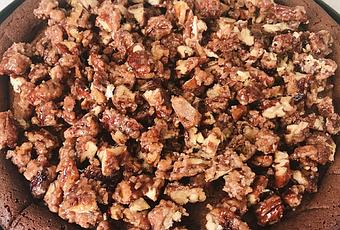 Temps de cuisson : Noix de pécan caramélisées : 5 minutes, Brownie : 25 minutes
