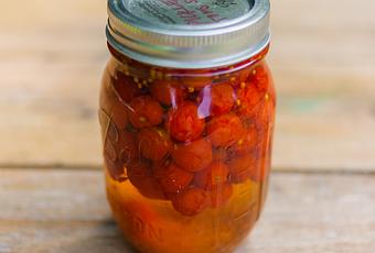 La façon la plus simple de faire un cornichon à la tomate est de se procurer votre recette préférée de cornichon au concombre et de l’échanger par des tomates cerises, mesure pour mesure. Vous pouvez les mettre au réfrigérateur après un jour ou deux, ou les traiter à chaud : un bain-marie de 15 minutes suffira à libérer l’air emprisonné dans le bocal et à créer le vide qui empêche l’oxydation, et les sucres et le vinaigre de la recette de cornichons conserveront les tomates pendant quelques années.