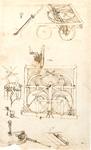 Autour de 1493, Léonard de Vinci esquisse un chariot ingénieux, apparemment conçu pour parcourir un chemin “programmé” à l’aide de cames.