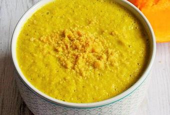 Aujourd'hui, je vous propose une Soupe à la courge crue aux noisettes (Vegan) :