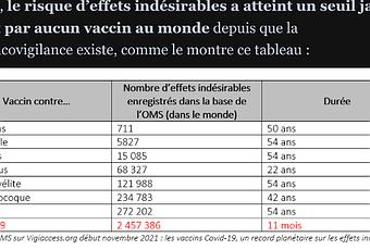 Le moins qu'on puisse dire, à la lecture de ces chiffres, c'est que ces vaccins (toujours en période expérimentale jusqu'en 2022 ou 2023) attestent d'un rapport bénéfices/risques qui n'a rien de rassurant.