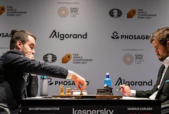 Le coup d'envoi du championnat du monde d'échecs 2021 a été donné à Dubaï. Le match pour le titre le plus prestigieux des échecs est organisé avec le soutien de la Fédération internationale des échecs (FIDE) entre l'actuel champion du monde Magnus Carlsen et le vainqueur du tournoi des candidats en 2020/21 Ian Nepomniachtchi. La première partie s'est terminée par un match nul après quatre heures de jeu.