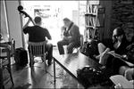 Dimanche après-midi, Nancy, les enfants et moi, on est passés à l'Ancien Cinéma Café Club à Vianden. Dans la rue, en s'approchant, on entendait déjà des airs de jazz. La grande vitrine était ouverte et deux musiciens assis à son rebord à l'intérieur déversaient leurs notes à tout venant. Sur le trottoir, encadrant la fenêtre devenue scène de spectacle ou amplificateur vivant, des clients lisaient, posés sur des chaises et des fauteuils.La vie est belle, parfois.On est rentrés. On a pris place un peu plus au fond, dans un canapé très agréable avec plein de livres de Murakami à son chevet. Nous étions dans l'entre-deux entre l'espace café avant et la grande salle intérieure dominée par un grand écran occupé d'abord avec le Tour de France live et ensuite un film muet d'Harold Lloyd.J'adore cet endroit.Nous avons pris des cafés et des gâteaux et ensuite nous sommes partis.Avec les enfants qui réclamaient leur part du jour et leur parc de jeux, on ne pouvait pas vraiment rêvasser longtemps dans ce cadre oniriquement beau.Mais on reviendra ...
