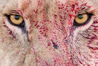 Au moment où la lionne a regardé Lara avec un regard perçant, du sang cramoisi coulait de son museau. Parc national du Serengeti, Tanzanie Canon EOS 750D, objectif Sigma 150-600 mm f/5-6,3 à 283 mm, 1/400 s à f/5,6, 500 ISO. Copyright : Lara Jackson