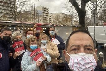Bon accueil des habitants de Paris 12 et Paris 20 au marché Nation pour Anne Hidalgo