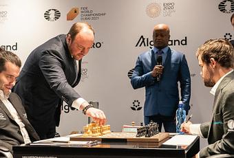 Difficile de repartir au combat après la partie marathon de la veille qui s'est terminée après minuit, heure locale. Il faut préciser que les parties débutent à 16h30 à Dubaï pour permettre de suivre cet événement sur internet à des horaires optimaux aux 4 coins du monde. Sans réelle surprise, La septième partie d'échecs du Championnat du Monde FIDE 2021 s'est révélée la nulle la plus courte du match, avec seulement 2h30 de jeu. Les héros avaient vraiment besoin de souffler après un combat titanesque.