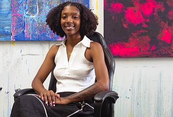 L’artiste né à Brooklyn, Ryan Cosbert, a grandi avec une pile de carnets de croquis. L’ancienne élève de la School of Visual Arts (SVA), qui, en 2021, a obtenu son diplôme de la même alma mater que sa mère, a passé sa jeunesse à voyager entre New York et Virginia Beach, en Virginie, pour perfectionner son métier tout au long. Posez-lui des questions sur son travail avant d’assister à la SVA, et elle vous expliquera qu’il était « semi-développé ». À l’école, elle a expérimenté la sérigraphie et l’impression au bloc, la photographie et le dessin, ne s’engageant dans la poursuite de la peinture abstraite que sa deuxième année. Elle a commencé à faire des recherches sur Sam Gilliam et Jack Whitten, Norman Lewis et Alma Thomas, Pat Steir et Anne Truitt et Ed Clark, parcourant des livres d’art, jouant et rejouant toutes les vidéos qu’elle pouvait trouver sur YouTube. Au cours des quelques mois qui se sont écoulés depuis l’obtention de son diplôme, Cosbert a développé un rituel : passer la majeure partie de son temps en studio, trouver sa voix et développer son style désormais emblématique. L’artiste s’appuie sur une grille ou un format « carrelé » conçu pour répartir uniformément la texture de ses toiles, offrant une organisation cruciale et insufflant à chaque pièce une complexité géométrique qui non seulement ajoute de la dimension à l’œuvre en question, mais rend hommage à sa maison d’enfance. : La mère de Cosbert a posé des carreaux sur le sol de leur cuisine, dans les salles de bains et sur les murs, inspirant l’artiste à les utiliser matériellement dans chaque pièce.