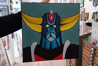 De nouvelless peintures et des customs sont disponibles à la Galerie L’oeil ouvert à Paris dans le quartier de République dont des des peintures de la série Goldorak.