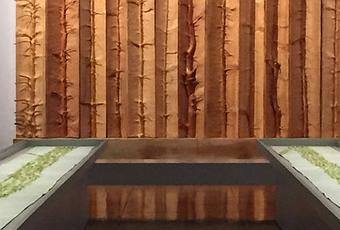 Quand, ces jours-ci, j’ouvre ma fenêtre, le matin, je pense à Giuseppe Penone. J’ai visité l’exposition à la BNF depuis plusieurs semaines. En entrant dans l’espace, j’ai d’abord ressenti l’impression de respirer : l’espace, les poutres dépouillées semblant des orgues, l’étendue de la toile où court l’empreinte de l’arbre couché, tout cela ouvrait quelque chose en moi. Et puis, il y avait ces paupières fermées couvertes d’épines d’acacia, qui me rappelaient celles que j’avais vues il y a quelques années, couvertes d’empreintes d’argile prises au creux des mains. Je n’ai pas osé m’engager au milieu de ces deux voiles étendues évoquant vaguement un « saint suaire » (les paupières fermées, la trace laissée sur le tissu). J’ai fait le tour de l’arbre vert, tentant de déchiffrer le texte écrit de part et d’autre. La grande toile suspendue vers le fond, invitant à poursuivre le chemin vers les orgues, ressemblant, de si près, à des livres ouverts sur leur reliure, je suis resté longtemps dans cet angle entre dessin et sculpture. Puis j’ai traversé les pièces où sont exposés les tapis verts d’empreintes digitales au coeur desquels pendent les empreintes du creux des mains. Les livres étaient là, leur couverture suffisait à les faire paraître. Les ondes concentriques semblaient envahir l’espace même s’il leur fallait franchir des obstacles. Et je suis revenu sur mes pas dans la grande salle, y arrivant alors face aux paupières d’où semblait couler des ruisseaux dessinant des mouvements liquides, vagues épousant les reliefs de l’écorce. Qui pleure ici ? Est-ce Arthur Rimbaud ?
